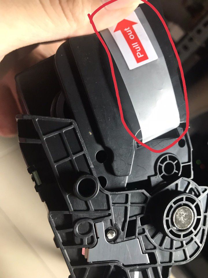 Xứ lý: Mở nắp máy in lấy hộp mực CF226A ra khỏi máy in và rút dây seal màu trắng có mũi tên màu đỏ ra khỏi hộp mực 26A. Xong gắn vào máy in => In test lại sẽ OK