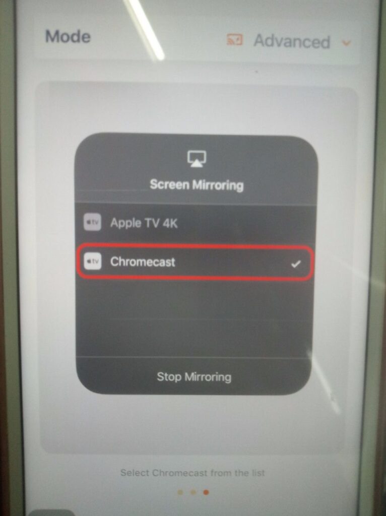 Hiển thị giao diện mới chọn “Screen Morring” => Hộp thoại “Screen Mirroring” xuất hiện chọn “Chromecast” => Nhấn nút Home trên điện thoại => Thấy toàn bộ màn hình điện thoại Iphone show lên tivi => nhấn nút Home trên iphone => mở ứng dụng cần làm việc nhưng Zalo Video, Hangout video… để gọi họp.